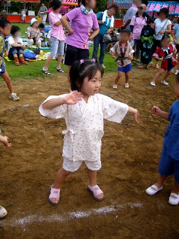 と ビデオ片手に子どもに踊りを促してたけど・・・ 子どもだって、ビデオのために、親のために盆踊るんじゃないっつーの。 Σ(・ε・;)