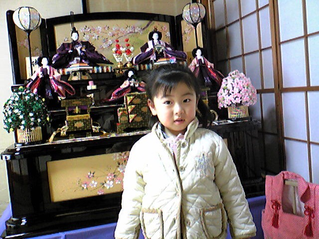 ってことで、 シィ と一緒に 母屋の座敷に おひなさまを出しました。