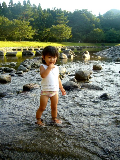 待ち時間に 隣の川で 足だけ入り、ちょっと涼む。