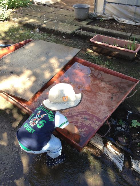 ミニプールを出して、足だけ水遊びさせてたけど、