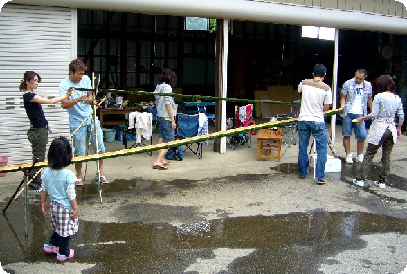もぉー、みんな 流しそうめん装置を作る行程までで かなり楽しいみたいだわ。