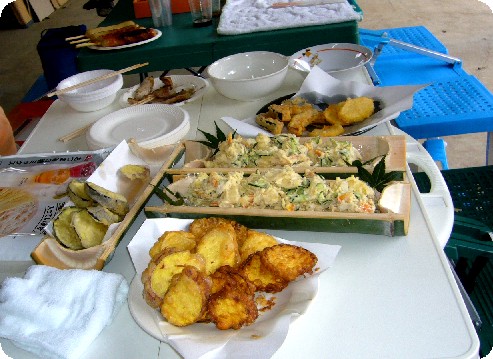 女子チームは その間に 天ぷらの材料を調達したり洗ったり・・・・