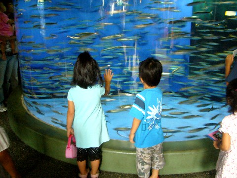 イワシの回遊する水槽は 大人にも子どもにも人気。