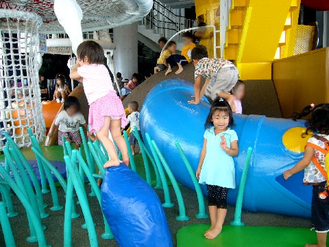 まだ ネットの遊具が怖くて遊べないみたいだけど、外に出ている透明チューブも通っていたし・・・ さすがに遊び方がしっかりしてきました。