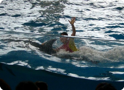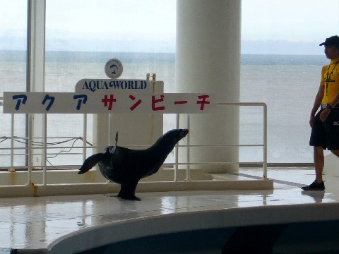 食事をとった後は、お楽しみの イルカ・アシカのオーシャンライブ を見に行きました。