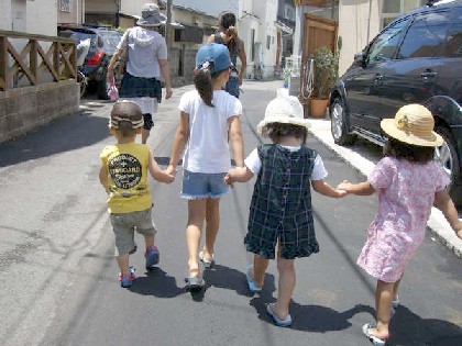 今度はみんなで 仲良く手をつないで 海方面へ歩き・・・・