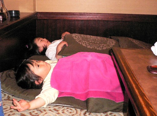食事に飽きると、子どもたちは速攻遊びだします。