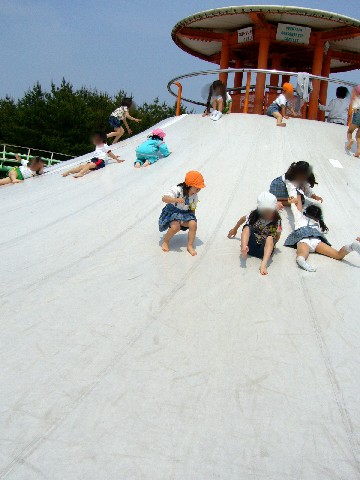 去年のシィなら 絶対遊べないような遊具でしたが、頂上まで行って回転して降りてきたり、滑り降りたり。