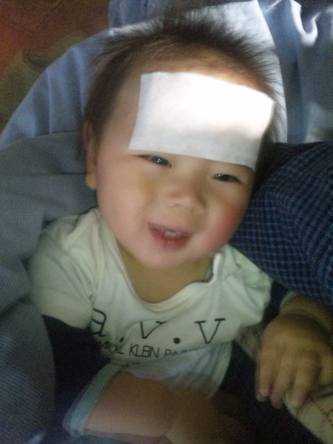 夕方慌てて医者連れてったけど、 初診は のどの赤みと鼻風邪。
