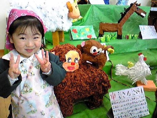これは クラスのみんなで作った 干支飾り。 シィ のクラスは 申 を作りました。