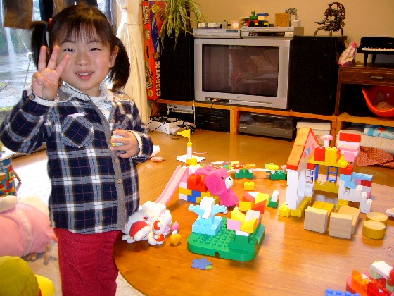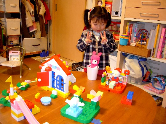 強風だったのでタコ揚げしたり、ハウスの中でシャボン玉や、作業用ケースを並べてジャンプしたりして 健全に身体を動かしたり、まぁあとは 例のごとく 部屋でブロックなどなど‥‥