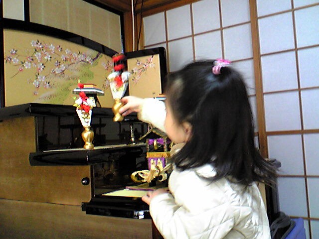 お内裏様とお雛様には 丁寧に 挨拶をして、お道具をつけてもらいました。