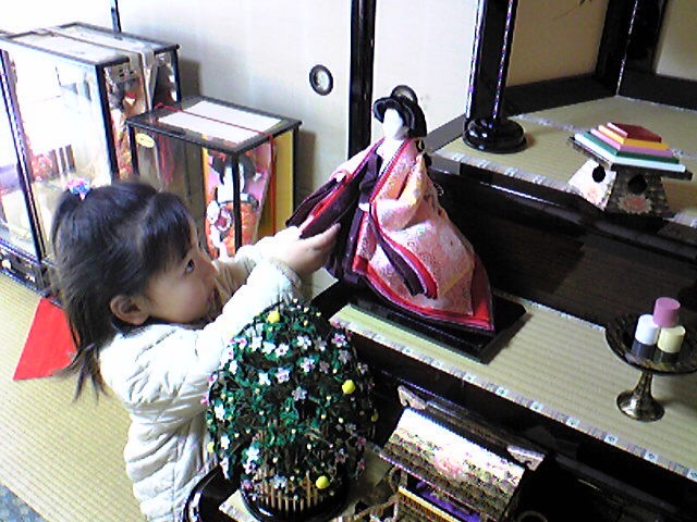 ってことで、 シィ と一緒に 母屋の座敷に おひなさまを出しました。