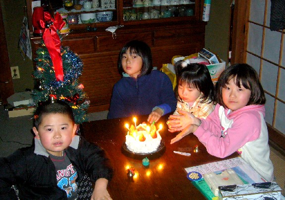 本当は部屋でやる予定だった クリスマスパーティーも、急遽 おばあちゃんの手も借りて、 母屋でのパーティーに変更。