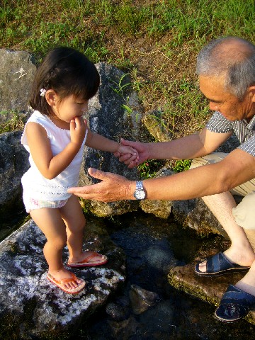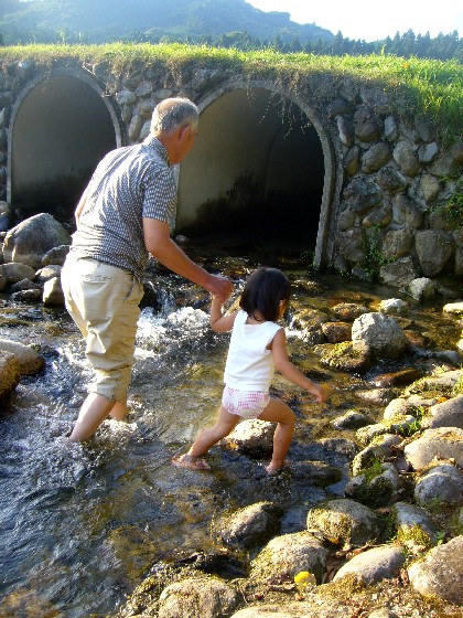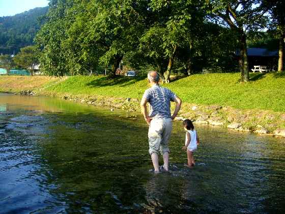 待ち時間に 隣の川で 足だけ入り、ちょっと涼む。