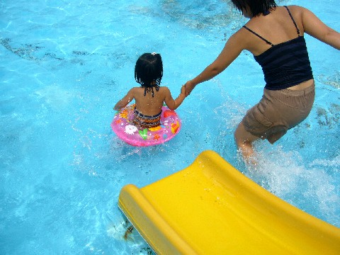 写真奥が 通常のプール部分です、水深は 深くても大人の腰くらいまでかな?