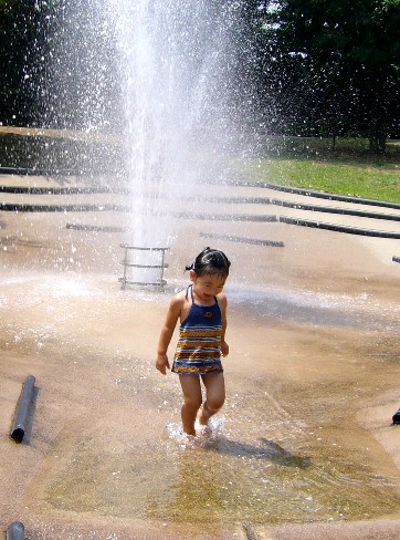 噴水で顔洗ったりして遊んでました。