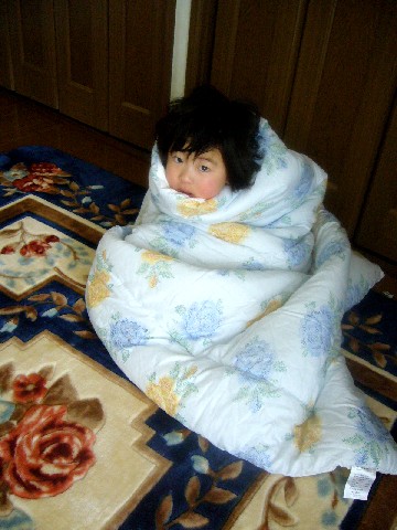 さーむーいーー、だっこぉーーー」泣いてます。