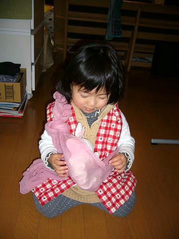 ちなみに、シヅクが着ているのは お婆さん(88歳)お手製の 袖なし半てんダス。
