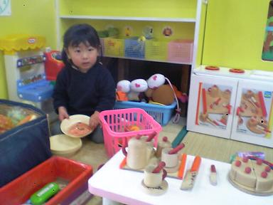 木のママゴトセットで 私相手に とっても楽しそうに ごっこ遊びしていた。