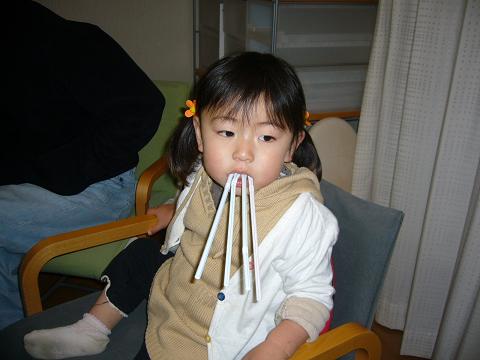 どっから持ってきたンだか、ストロー4本加えてみた。 得意げスタイル。
